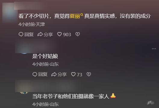 当年她在剧中的时候,她和老爷子就像是一家人一样,感情十分的亲切。