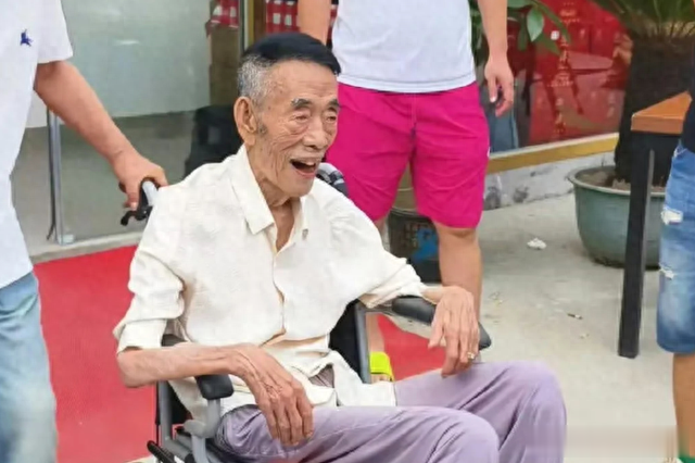 一位94岁的老人,都已经瘦成一把骨头了,在临走前的当天上午,他还坐在轮椅上为儿子撑场面儿。